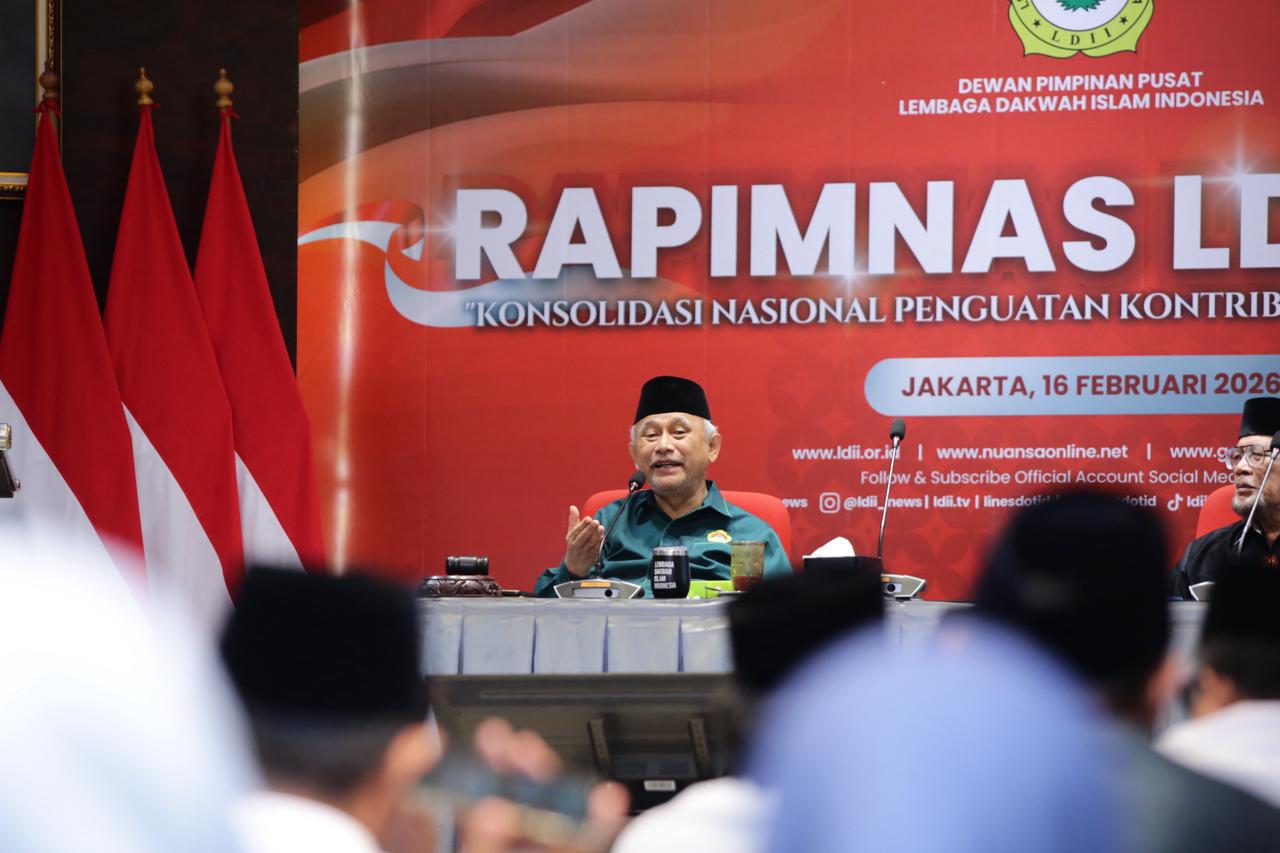 DPP LDII menggelar Rapat Pimpinan Nasional (Rapimnas) 2026 secara luring dan secara daring dari studio utama di Kantor DPP LDII, Jakarta, Senin (16/2/2026).